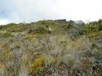 La randonnée débute par le sentier Mario (Photo 1) qui coupe quelquefois les lacets de la route forestière du Haut Tévelave avant de rejoindre le mirador de surveillance, proche du sentier des Tamarins. Le cheminement en pente moyenne s'effectue de manière très agréable sur l'herbe, la terre ou un long nid de feuilles de tamarins, à l'ombre de ces grands arbres (Photo 2). A partir du mirador, le trajet se poursuit sur la piste caillouteuse et recouverte d'herbes jaunes (Photo 3). Très vite on trouve de nombreux raccourcis qui évitent de longer les lacets de la route. Ce sentier, étroit, impossible à perdre, est principalement entouré d'herbe, de branles verts ou de fougères (Photo 4). Après avoir traversé la route 4 ou 5 fois, on parvient à une barrière ouverte avant la profonde vallée de la Ravine de Bellevue. Sur la gauche, débute le sentier du Petit Bénare qui domine la rive droite de la ravine. De là, on peut à loisir regarder vers l'horizon et voir la totalité du parcours hors sentier qu'on effectuera à partir du Petit Bénare (Photo 5). La ravine, plus haut, montre un canyon plus impressionnant de loin qu'à franchir une fois sur place. La montée, maintes fois décrite, n'est jamais forte mais toujours caillouteuse (Photo 6). On n'en finit pas d'enjamber ou d'éviter les innombrables cailloux de toutes tailles et il faut près d'une heure pour enfin parvenir au premier point de vue sur le Cirque de Cilaos. Le véritable Petit Bénare est à moins de 400 m sur la gauche et un détour pour l'atteindre ne comporte aucune plus-value. Un coup d’œil sur la droite permet d'apprécier la pente presque nulle qui va s'effectuer en total hors sentier (Photo 7). La marche peut commencer. Le terrain est tel qu'il est facile de marcher à peu près partout. Le parcours ci-dessous a été réalisé en tentant de rester constamment au plus près du rempart vertigineux qui domine le cirque. Les paysages, au fur et à mesure de la progression, s'observent sous des angles inhabituels (Photo 8). Les rares petits détours d'une vingtaine de mètres permettent d'éviter des roches plus hautes que les autres qui ralentiraient le passage (Photo 11). Ailleurs, c'est souvent le désert et il n'est même pas besoin de chercher où poser le pied (Photo 9). Ne pas hésiter à s'arrêter le plus souvent possible pour admirer le cirque et ses îlets (Photo 12). On domine l'Îlet à Cordes et quelques îlets autour du Bras de Saint-Paul. Des portions sont totalement recouvertes de hautes herbes fleuries pour une balade reposante (Photo 13). La végétation qui a totalement brûlé en 2010 et 2011 reprend ses droits. Quelques zones épargnées peuvent procurer de l'ombre pour les moments de repos (Photo 15). Les bois de rempart (Photo 14) et barbes de Jupiter (Photo 16) sont omniprésents. On parvient à la source de la Ravine Bellevue entourée de hautes collines rocheuses qui peuvent impressionner (Photo 18). Pas d'inquiétude pour le franchissement car le meilleur passage est également le long du rempart, peu dangereux à cet endroit. Les 60 m de descente s’effectuent sur un terrain rocailleux où il est parfois nécessaire de s'asseoir sur des rochers afin de descendre prudemment. On retrouve quelques traces de passage prouvant que des marcheurs viennent admirer ces paysages. Des zones plus rocheuses que d'autres se contournent également par de courts écarts qui ne ralentissent pas (Photo 21). On marche ainsi, toujours aussi facilement jusqu'à la fin des zones incendiées (Photo 22). Arrive ensuite le mur de végétation que l'on pourrait croire infranchissable (Photo 23). Dès les premiers mètres, on se retrouve sur un ancien sentier encore en très bon état (Photo 24) et c'est sans effort particulier qu'on arrive à un enregistreur de températures (Photo 25). L'appareil, planté là sur un petit poteau par l'Université de la Réunion sert de point de repère pour ne pas manquer la piste qui redescend vers le sud-ouest. Quand on regarde l'enregistreur, partir par la gauche du petit tamarin (Photo 25) puis effectuer 15 mètres un peu plus difficiles que ce qui vient d'être fait pour arriver à la piste. Cette large voie, qui a beaucoup souffert, aurait du mal à rendre le service pour lequel elle a été construite car les camions de pompiers ne pourraient plus franchir quelques ornières. Le sol est un peu terreux et pierreux (Photo 26) mais surtout herbeux. Certaines parties sont même carrément herbues mais un sentier trahissant quelques passages permet de marcher sans effort (Photo 27). Sur la droite, la vallée de la ravine est parfois constituée de hautes falaises et de grottes qu'on peut admirer par de courtes incursions dans les brandes. On se retrouve assez vite à la piste forestière de la Scierie. Prendre à droite sur la large voie caillouteuse (Photo 28) et se diriger vers la Ravine de Bellevue qui forme ici un véritable canyon. La pente est faible et l'on parvient assez vite à la barrière au départ du sentier du Petit Bénare. Le reste de trajet de retour emprunte le même circuit que celui utilisé au départ.