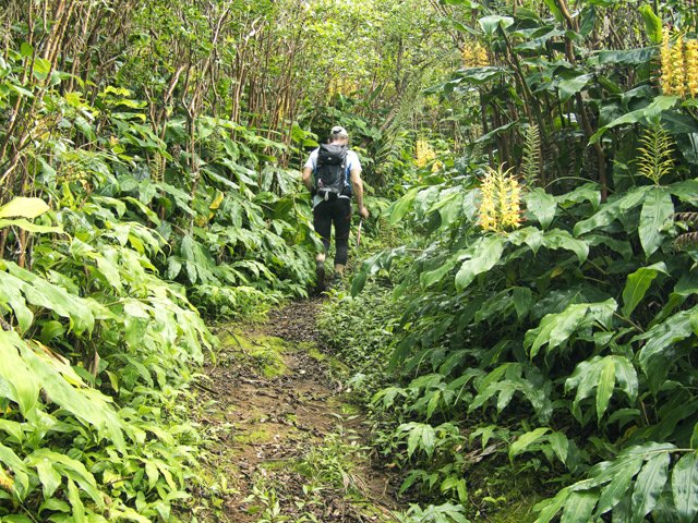 Le sentier Grand Case, non marqué sur les cartes, est étonnamment en très bon état et ne nécessiterait que quelques heures de nettoyage pour le rendre aussi praticable que celui de la Pièce Jeanne. Il est surtout utilisé pour se rendre à la Source la Boue en venant de la Pièce Louise. Un sentier, rencontré à 980 m d'altitude part sur la droite et se dirige de manière acrobatique vers le Petit et le Grand Bras. Il sera reconnu lors d'un prochain passage vers le Bras des Merles en utilisant ce sentier. Le reste de la boucle emprunte longuement routes et pistes à travers champs d'ananas ou bananeraies. Le sentier de la Pièce Jeanne grimpe régulièrement vers les Makes et le Sentier du Malabar Mort en offrant de beaux points de vue sur les Makes, la Chaine du Bois de Nèfles ou le Dimitile au loin. Il est conseillé aux premiers randonneurs qui effectueront ce parcours de se munir d'un sabre pour retracer les 30 premiers mètres si envahis qu'il faut ramper sous les branches. Une fois ce petit travail exécuté,quel plaisir de parcourir la boucle dans les deux sens.