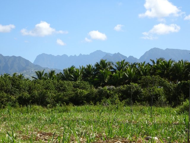La randonnée débute au terrain de sport de Bois d'Olives où quelques places de stationnement se situent près des petits commerces. Marcher quelques mètres sur la Rue Baba Selly puis bifurquer sur le sentier qui traverse un semblant de parc arboré, peu entretenu mais éclairé ! (Photo 1). On profite des premiers rayons de la journée qui éclairent les cirques et les pitons qui les entourent (Photo 2). Le sentier se termine à la RD 38 à quelques pas du pont enjambant la Ravine des Cabris. Cette ravine, uniquement en eau durant les cyclones, a le fond couvert de verdure et se prête peu à des balades hors sentier (Photo 3). Marcher vers Saint-Pierre et bifurquer aussitôt sur le Chemin Palma, une rue très calme de Bois d'Olives qui descend en pente douce vers les ruines du Canal Saint-Etienne (Photo 5). Cet ancien canal qui alimentait Saint-Pierre a été totalement abandonné mais un sentier qui en longe une partie sillonne entre nature et habitations (Photo 6). On se retrouve à nouveau à la Ravine des Cabris qu'on franchit sur une passerelle (Photo 7). Le fond est déjà plus rocheux qu'en amont avec toujours les mêmes panoramas sur le Gros Morne qu'on ne quittera pas de la matinée (Photo 8). Le sentier longeant le canal se poursuit encore sur un bon kilomètre. Il est parcouru par le trail mais abandonné pour cette boucle. Aussitôt la passerelle franchie, trouver le sentier qui démarre à gauche. Il est emprunté par les joggers qui s'entraînent vers le circuit de motocross de Saint-Pierre. Il traverse presque à plat une grande étendue couverte d'acacias, épineux et grandes herbes (Photo 9). Il se termine à une rue bordée d'arbres qu'on évite pour partir à gauche sur une piste plus large mais également herbeuse (Photo 10). On se retrouve à marcher dans une forêt inextricable de jeunes acacias, le long d'un petit canal envahi par les plantes et les feuilles (Photo 11). La piste se transforme en sentier pour franchir la Ravine des Cabris puis on parvient dans une zone industrielle et commerciale qui ronge chaque année la forêt d'acacias (Photo 12). La piste, toujours présente sur la carte, est devenue une route goudronnée et c'est sur un large trottoir que se poursuit la boucle. Au premier rond-point, contourner et prendre à droite, longer un grand bâtiment puis retrouver une piste fréquentée par les coureurs à deux pas du circuit de motocross. On peut poursuivre tout droit en direction de la station service proche de la RN1. Pourtant, la piste partant sur la droite est plus agréable dans son écrin de verdure (Photo 13). A l'approche de la Ravine des Cabris, elle oblique sur la gauche et se poursuit dans le même type de végétation (Photo 14). Plus loin, les acacias sont remplacés par des chocas et des tamarins dont les fruits pendent au bout d'un long pédoncule. Les branches couchées par le vent ont été taillées pour créer un tunnel végétal (Photo 15). Le bruit de la circulation grossit de plus en plus lorsque l'on arrive à la petite route qui longe la voie rapide. Cette route étroite permet cependant le passage des camions qui viennent ici déverser impunément leur contenu créant des panoramas bien différents de ceux observés au départ (Photo 16). Les caméras sont présentes partout le long de la RN1. Si l'une d'entre elles était orientée sur cette petite route, il y a de fortes chances que la pollution diminuerait mais qui prendra un jour une telle décision ? C'est parti pour deux km durant lesquels le bruit ne cessera pas car, même la nuit, cette RN1 est toujours encombrée, donc bruyante (Photo 17). Curieusement, cette région sèche et surchauffée où aucun bovin ne paisse, est surtout recouverte de prairies régulièrement fauchées (Photo 18). Après avoir frôlé des oratoires différents mais complémentaires (Photo 19), on aperçoit au loin une vieille cheminée du côté de Pierrefonds qu'on rejoint en quelques minutes (Photo 20). Attention à la circulation pour traverser la route et rejoindre ce village coincé entre la Rivière St-Etienne, la RN1 et les champs de canne. Emprunter n'importe quelle rue et se diriger vers l'ancienne usine qui tombe en ruine et occupe une très grande superficie. Certaines dépendances ont été rénovées et sont occupées tandis que le corps principal de l'unité de production plie sous le poids de la rouille (Photo 22). Deux énormes grues de déchargement vieillissent également (Photo 21). Ne pas manquer au retour l'église sur la gauche qui ressemble plus à un magasin à sucre qu'à un édifice religieux. Seule la croix permet de la deviner dans son écrin de verdure. Regagner et traverser la D26 et partir dans les cannes pour retrouver la campagne. Paradoxalement, la circulation sur cette piste existe et il faut en tenir compte. Après un grand virage vers la gauche, on se rapproche de Bois d'Olives dans un paysage calme et verdoyant sur une piste reposante (Photo 23). Les prairies se multiplient avant d'être remplacées par de la canne à sucre et des palmeraies (Photo 24). La fin du parcours campagnard retrouve les acacias et savane du départ (Photo 25). Après avoir franchi le Canal St-Etienne sans trop le voir puis longé le collège, on rejoint la RD38 par le Chemin Vilris. Le parcours officiel du trail urbain file sur la gauche vers la chapelle qui se délabre d'année en année et ne résistera pas au prochain cyclone (Photo 27). Les puristes suivront tour à tour l'Allée des Bois Noirs, le Chemin Bancoule puis le Chemin de la Ligne d'Equerre avant d'arriver au lycée (Photo 28). Le terrain de sport, fin de la boucle, est à une centaine de mètres.