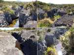 La deuxième partie, plus sportive et plus compliquée pour la remontée vers le Grand Bord, emprunte la PF des 1800 vers la droite pour une nouvelle séance de repos. Elle est large, sèche, caillouteuse, bordée de beaucoup d'ajoncs d'Europe, de fougères et de carcasses d'arbres calcinés (Photo 14). Après avoir franchi une demi-douzaine de ravines, guetter particulièrement la Ravine Saint-Gilles, insignifiante à cette altitude mais très importante comme repère. C'est à moins de 10 mètres de la traversée que débute l'ancien sentier matérialisé par une très discrète flèche blanche peinte au sol (voir § ci-dessous). Le GPS est recommandé pour éviter de perdre la trace des pointillés de la carte IGN dont on ne s'éloigne jamais de plus de 10 mètres sur le terrain en raison de certains obstacles créés par les incendies. Des rubalises très rares au départ, des traces de peinture qui diminuent également dans la montée ou de rares cairns viennent régulièrement rassurer sur la direction empruntée. Garder en mémoire qu'on longe la rive gauche de la Ravine Saint-Gilles sur les trois quarts de la montée. Le sentier est fréquemment présent (Photo 15) puis disparaît pour quelques mètres avant de resurgir entre des fougères, des branles verts (Photo 16) ou des bois calcinés qui laissent des traces noires sur les vêtements (Photo 17). A mi-parcours, on remarque un cratère qui dépasse de la planèze (Photo 20). Il ne s'agit pas du Piton de la Ravine Saint-Gilles marqué sur les cartes sur le bord du rempart de Mafate. Il faut d'abord partir à gauche, traverser la Ravine Saint-Gilles, le rejoindre et le grimper par la gauche en rejoignant tout d'abord un gros bloc de basalte érodé (Photo 21). Près du bloc, un cairn indique l'ancien passage mais il est assez difficile à discerner en raison des fougères qui l'obstruent. Ne pas hésiter à franchir ces dix mètres qui griffent un peu pour parvenir au sommet d'un plateau bien dégagé. De la lèvre du cratère on a de belles vues sur le fond infranchissable. La fin de la montée s'effectue toujours au plus près de la ravine, dans le fond même ou dans les petits branles verts qui la bordent. On se retrouve enfin, après 80 minutes de montée sportive, sur le sentier de la Glacière bordé à cet endroit de nombreuses clairières invitant au bivouac (Photo 23). Pas de conseil particulier pour se rendre au Piton Bernica. Les sentiers et pistes, très nombreux et maintes fois décrits, partent tous vers le Maïdo. La reconnaissance effectuée a suivi le sentier de bord du Piton de la Ravine Saint-Gilles jusqu'au point 2263 pour obliquer à gauche vers l'Observatoire de l'Air. Après une très courte portion de béton, partir à gauche vers le Piton Bernica reconnaissable à son mirador que l'on n'a guère quitté des yeux depuis le départ de la boucle. Un sentier débute au pied du mirador et plonge rapidement vers la route du Maïdo. Il est étroit, en bon état mais rendu difficile par la quantité de pierres qui l'encombrent (Photo 25). Ne pas emprunter la route mais partir légèrement sur la gauche et suivre longuement une piste couverte de laves aux couleurs chaudes parcourue par les cyclistes et les randonneurs (Photos 26 et 27). Cette piste en descente constante se termine à la PF des 1800 qu'on emprunte sur une courte distance en partant vers la droite. Très vite, la PF Bolon se présente sur la gauche, très proche d'un sentier de vététistes. Ce sentier est très agréable entre de beaux tamarins (Photo 28). Le quitter au premier croisement et emprunter la piste Bolon qui effectue plusieurs virages également en descente constante vers la RF des Tamarins et le parking laissé au départ.