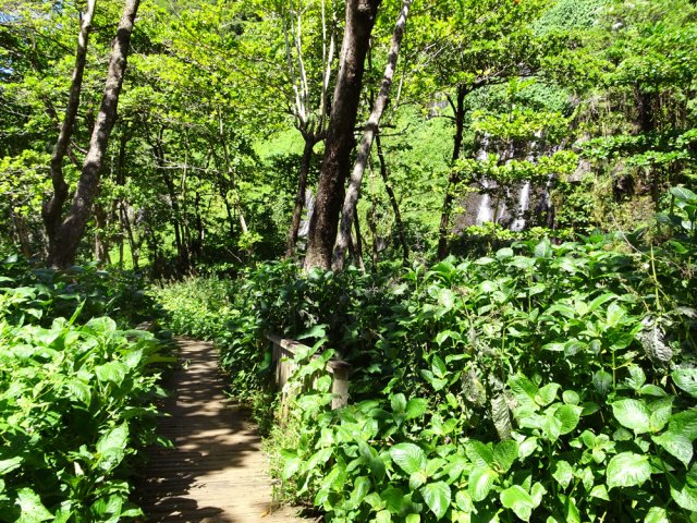 De tous les circuits pour personnes se déplaçant en fauteuil roulant, celui-ci est le plus verdoyant. De plus il propose une balade le long de l'océan et permet d'approcher d'assez près certaines cascades coulant de la falaise. Toute la boucle, très verdoyante offre également de larges zones ombragées pour le repos et de magnifiques kiosques pour le cari en famille. En effectuant la totalité de la piste bétonnée et ses écarts, on dépasse un peu les 1500 m, ce qui justifie un déplacement dans cette région battue par les vagues.