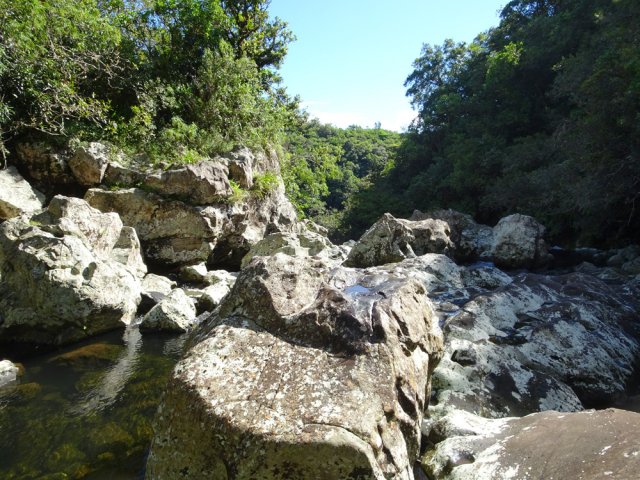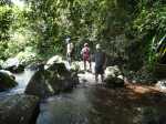 Comme toujours, pas d'explication précise pour remonter les rivières car il est possible de marcher en rive droite, en rive gauche, sur les roches du lit ou dans le cours d'eau lui-même. Les contournements de cascades par les falaises ou les fortes pentes s'effectuent sur des traces déjà existantes, donc, inutile de se frayer un chemin entre les goyaviers inextricables si l'on ne découvre pas le début, souvent très pentu.