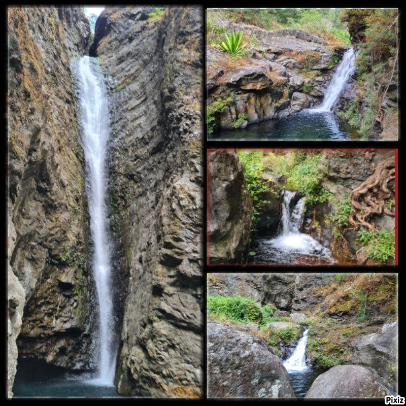 La randonnée aquatique débute au pont enjambant la Rivière des Fleurs Jaunes entre la Mare à Vieille Place et Grand Îlet. Rejoindre la rive en suivant le petit sentier en amont du pont. La partie amont de la rivière est beaucoup plus facile à remonter que celle qu'on emprunte car les plaques de basalte y sont plus nombreuses (Photo 1). Passer sous le pont et entamer ces 4000 mètres le long de la rivière. Comme toujours, pas de description sur la manière d'y parvenir car chacun se fraye un chemin en fonction de ses préférences ou de ses habitudes. Il faudra de toute façon marcher dans l'eau, arpenter les rives de galets, de plaques basaltiques ou escalader pour contourner des canyons si l'on veut éviter de nager. Après 100 mètres, ne pas manquer la partie plate en rive gauche pour couper un long méandre. Après un bon quart d'heure de marche, on arrive à la Ravine à Jacquot. Peut-être est-ce la grosse roche située à la fin du torrent qui se nomme ainsi (Photo 2) ? Plus bas, la vallée, encore large jusque là, va en se rétrécissant et les premières hautes falaises apparaissent (Photo 3). On ne les quittera plus jusqu'au pied du Bémassoune. La rivière des Fleurs Jaunes est un torrent pérenne et fougueux qui nécessite parfois un peu d'attention pour le traverser (Photo 4). Heureusement, des plaques de basalte permettent de marcher plus rapidement par endroits sans risque de trébucher sur les gros galets (Photo 5). On passe bientôt sous la passerelle au pied de la Pente Carozin. A tout moment, de fines cascades, des pisse-en-l'air ou des sources coulent des falaises bordant la rivière (Photo 6). La descente comporte très peu de pièges même sans être habitué à ces randonnées aquatiques. Après une heure de marche, on rencontre une petite touffe de bananiers et un camp braco permanent situé au tout début du sentier acrobatique remontant à Bé Cabot (Photo 7). Très vite, on se retrouve près d'un canyon où le seul moyen de passer serait de nager sur quelques mètres. Repérer donc le grand talus en rive gauche. Il débute par de grosses roches qu'il faut escalader avant de franchir un petit col entre les chosas (Photo 8). De ce petit col, on a une belle vue sur l'aval de la rivière qui coule sur de larges plaques basaltiques (Photo 9). Une fois au pied du talus, on peut étudier plus facilement le canyon et les bassins barrant le passage (Photo 10). Poursuivre vers l'aval le long de la rivière toujours aussi fougueuse (Photo 11). La suite de la descente s'effectue le long de magnifiques petits canyons étroits mais surmontés de larges plaques permettant de les éviter (Photo 12). On domine toujours la rivière de quelques mètres où le seul danger provient des roches pouvant être glissantes (Photo 13 et 14). Le plus bel endroit de la journée, le confluent de la Ravine Bécabot et de la rivière Fleurs Jaunes, s'admire également du haut des rives (Photo 15). Trente mètres après, entreprendre la descente vers le lit de la rivière pour éviter d'escalader la falaise qui se présente. Plusieurs passages permettent d'y parvenir en se maintenant aux filaos. On se retrouve entre passages dans l'eau et marche sur galets comme au départ. Plus loin, c'est la Ravine Sèche qui termine sa course dans la rivière par quelques petites chutes (Photo 16). De jolies cascades en amont peuvent s'atteindre mais il vaut mieux les garder pour le retour. Quelques passages un peu techniques imposent de courtes acrobaties avant d'arriver à un gros rocher barrant le passage. La falaise en rive droite, le rocher en rive gauche et la forte pente qui l'entourent donnent l'impression qu'on ne passera pas. Trouver le boyau si étroit qu'il faut d'abord passer le sac à dos avant de se faufiler entre les roches (Photo 17). Ce passage pourrait paraître ludique pour certains randonneurs beaucoup moins pour d'autres ! Une fois l'écueil passé, la descente se poursuit, la vallée s'élargit et les canyons disparaissent pour un temps (Photo 18). La rivière est même plus calme et peu profonde (Photo 19). A l'approche du grand méandre qu'on repère sur la carte, on sait que l'Îlet Bémassoune est situé 150 mètres au-dessus de nos têtes mais de rapides coups d'œil ont vite fait d'éliminer les possibilités d'y monter (Photo 20). Lors d'un cheminement en rive droite, on retrouve des traces de camps bracos, proches du sentier qui remonte à l'îlet du Butor près de la Mare à Vieille Place. Ce sentier, encore bien visible se termine hélas en propriété privée après 400 mètres de montée abrupte et très sportive. Ne pas le tenter. Depuis le départ, on peut observer un peu partout des coulées calcaires chaque fois qu'une source dégouline des falaises (Photo 21). Repérer, en rive gauche, le talus surmontant une plaque basaltique (Photo 22). Difficile d'imaginer que le départ du sentier pour l'îlet Bémassoune se trouve ici ! Escalader ce talus et dénicher, à travers les chocas et filaos, la trace qui débute presque à plat sur une dizaine de mètres. Très vite, c'est penché vers l'avant et les mains au sol ou autour des goyaviers que commence la rude ascension (Photo 23). Revoir le profil ci-dessous avant de se lancer dans cette ascension. La pente est tout d'abord rectiligne et quasi verticale au milieu des jouvences et goyaviers. On peut perdre ce sentier à mi-parcours lorsqu'il oblique à gauche pour traverser une zone couverte de jouvences mais on le retrouve de l'autre côté de ce qui doit être une ravine en cas de fortes averses. Plus haut, le sentier monte un peu moins fort à travers les fougères un peu dénudées par les rares visiteurs du site (Photo 24). Même lorsque les goyaviers sont serrés et que les fougères ou chocas encombrent le passage, celui-ci reste toujours visible malgré les décennies d'inutilisation (Photo 25). Après 130 mètres de montée sportive, on parvient au plateau où il est possible de marcher entre les goyaviers