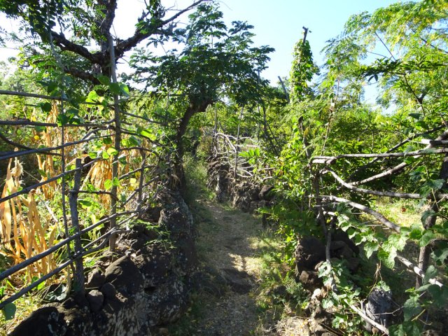 Si le sentier de la Salette a été happé par l'urbanisation, les sentiers Pavé, Grand Etang et Canal sont toujours tels qu'ils devaient l'être au siècle dernier. Ce sont les plus fréquentés par les randonneurs et les coureurs à l'entraînement. D'autres sentiers moins connus permettent de les relier entre eux et ainsi créer un maillage de nouveaux circuits au plus près de la ville de Saint-Leu. Cette courte boucle emprunte quatre de ces sentiers bien balisés suite à des courses organisées dans la région. Ils permettent de franchir la Ravine des Poux, la Ravine de Petit Etang et celle de Grand Etang, toujours à sec mais bordées de pierriers stables de millions de roches acérées sur lesquelles il vaut mieux ne pas glisser. Si les cultures de la région ont pu être prospères au 19ème siècle, ce sont désormais les herbes, acacias, épineux et surtout une dizaine d'espèces de plantes laissant leurs graines sur les vêtements qui prospèrent. Prévoir des vêtements synthétiques adaptés à ces attaques incessantes et difficiles à éviter. Ne pas oublier la boisson, surtout en période chaude où les roches ont vite fait d'atteindre 50°.