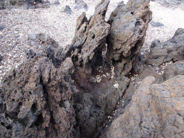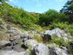 La randonnée débute au grand parking de la Ravine des Trois Bassins, très connue des surfeurs de l'île qui viennent braver la grande vague. On voit d'ailleurs très bien ces vagues successives et les surfeurs tentant d'y tenir debout (Photo 1). A partir du parking, descendre vers la mer par l'agréable sentier bordé d'aloe vera parfois en fleurs où viennent les oiseaux pour y chercher du nectar (Photo 2). Descendre à la plage et repérer pour le pique-nique du retour l'endroit ombragé à l'arrière (Photo 3). Traverser ensuite l'estuaire ensablé retenant une quantité d'eau plus ou moins franchissable en fonction de la saison. Rejoindre la rive droite puis emprunter le petit sentier qui longe la ruine de l'ancien pont (Photo 4). S'il y a trop d'eau, partir depuis le parking vers le pont. Passer sous le nouveau pont et grimper sur l'ancienne route. Partir sur la gauche vers l'ancien oratoire et une grotte remplie de tout un curieux capharnaüm. Suivre les traces sous les arbres parmi les roches pour remonter la rivière en rive droite (Photo 5). Pour varier les paysages, il est conseillé de marcher d'un côté à l'aller et de l'autre au retour. Des racines hors sol montrent la puissance de l'eau lors des rares crues de la ravine (Photo 6). Repérer les spots d'escalade pour donner la vocation de la grimpe aux enfants mais ne pas tenter d'escalader sans matériel. On s'approche de plus en plus de l'eau car la vallée se rétrécit. Les falaises qui la bordent sont parfois hautes, verticales et découpées (Photo 7). La véritable montée débute à un bassin qui peut contenir beaucoup d'eau. Des traces de peinture guident les marcheurs peu habitués à passer ce gente d'obstacle (Photo 8). Une fois le bassin évité, la remontée de roche en roche est presque ludique (Photo 9). Toujours chercher des yeux le meilleur passage avant de s'y aventurer. Les autres passages techniques ne dépasseront plus le mètre de hauteur. 30 minutes après le pont on parvient à un cassé reconnaissable à sa haute falaise impossible à escalader à mains nues (Photo 10). Les trois marmites sont très faciles à repérer au pied de la falaise en rive droite (Photo 11). Le jeu consiste à descendre dans les marmites. Pour cela, repérer les marches naturelles de l'une d'entre elles (Photo 12). Cette dernière correspond avec la deuxième par un petit tunnel (Photo 13). La troisième, en revanche, demande un court rampé un peu salissant pour y arriver en passant d'un puits à l'autre (Photo 14). Durant la courte jonction depuis la mer, on a de nombreuses occasions d'étudier et de comprendre la formation de ces cavités circulaires (Photo 15). Prendre tout son temps pour apprécier ce lieu original. En revanche, il est de bon ton de ne laisser aucun détritus autour de cette curiosité géologique. Avant de descendre vers la mer, partir vers la falaise en rive gauche puis se rapprocher de la grotte située au pied. On est tout d'abord frappé par la forte odeur ammoniaquée provenant de la grande cavité. En y regardant de plus près, on voit un impressionnant tas d'excréments de chauve-souris qui donne une idée du nombre d'individus pouvant y vivre (Photo 16). Par respect pour ces petites bêtes et dans l'ignorance des dangers que représentent ces excréments si on les touche, le mieux est d'apprécier la grotte de loin puis de poursuivre vers l'aval. Reprendre la descente, beaucoup plus facile sur la pente moyenne de la ravine (Photo 17). Marcher et sauter jusqu'au bassin et partir vers la gauche pour explorer une autre rive de la ravine. On y retrouve les mêmes arbres, les mêmes tamarins et des traces de passage de troupeaux de bœufs (Photo 18). La fin s'effectue en longeant de hautes barres rocheuses connues des alpinistes (Photo 19). Partir à gauche à nouveau sur l'ancienne route qui amène rapidement à la RN1a. Revenir au parking puis entamer une marche reposante dans les environs de la Pointe des Trois Bassins. Emprunter la route puis la piste qui la prolonge en direction de l'océan (Photo 21). On peut gagner Saint-Leu sans difficulté mais une première halte est possible à la petite plage située en fin de piste (Photo 22). D'autres étendues de sable se situent un peu partout dans les roches (Photo 23). Attention cependant de ne pas déranger d'éventuels naturistes préférant ce genre de mini-plages isolées. Prendre donc le sentier de bord qui n'a besoin d'aucune balise (Photo 24). On peut aussi quitter le sentier pour se rapprocher de petits bassins aux eaux calmes (Photo 26). Prendre le temps de s'asseoir sur une roche de la falaise pour regarder évoluer les surfeurs. Le parking se rejoint sur le même type de sentier offrant de beaux points de vue en direction de l'amont de la Ravine des Trois Bassins (Photo 28).