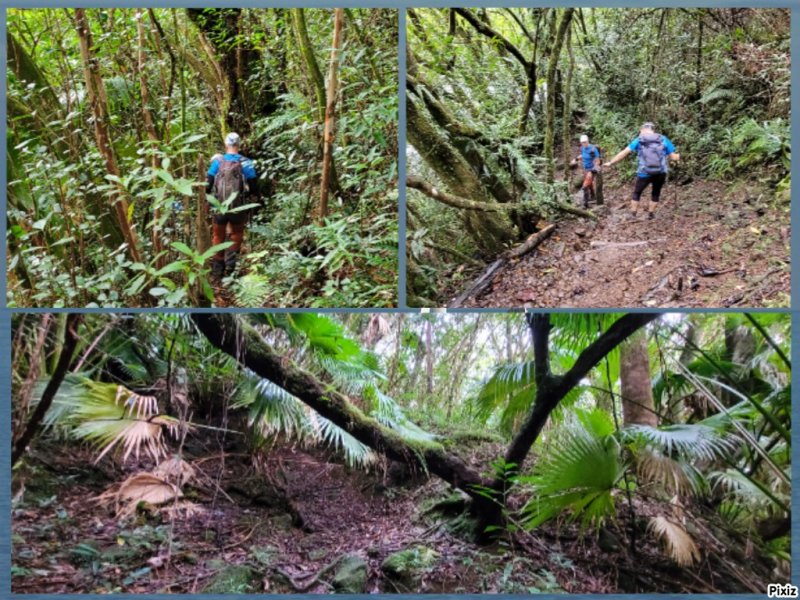 La randonnée débute sur le Chemin de Bellevue les Hauts (route de l'Eden et Cascade du Chien) que l'on a emprunté à partir de Vincendo. Plusieurs emplacements de stationnement se trouvent entre la piste de départ et celle du retour. La trace proposée commence près de la pancarte jaune du dernier parking. Il faudra obligatoirement effectuer la jonction en marchant sur la route, très peu fréquentée entre végétation assez fournie et champs de canne à sucre (Photo 1). Nombreuses sont les pistes débutant à gauche pour rejoindre des habitations ou propriétés privées. Voir la carte pour ne pas manquer celle partant vers le sentier. Emprunter une courte portion de cette large piste jusqu'aux quelques pieds de palmistes. Partir à gauche et suivre au mieux un chemin longeant les cannes, très envahi de végétation (Photo 2). Lorsque la piste, plus propre, fait un virage vers la gauche, chercher à droite le départ du sentier caché par les fougères (Photo 3). On est immédiatement surpris de trouver un sentier praticable après les 300 m effectués dans les hautes herbes pour y parvenir. Il descend entre les bois de couleurs très envahis par endroits de goyaviers (Photo 4). Le sol est terreux, parfois glissant recouvert aussi de feuilles tombées des arbres moussus (Photo 5). Des aménagements de qualité sont encore en bon état dans les parties les plus pentues (Photo 6). On rencontre une première bifurcation. Le sentier file droit en direction du Bras des Lianes. Prendre celui de droite partant à angle droit. Si le chemin parcouru jusqu'ici était en descente, ce nouveau sentier est plus facile car il longe souvent la courbe de niveau, n'effectuant des montées et descentes que pour le franchissement des ruisseaux. Plus loin, il descend également. On rencontre quelques passages délicats assez pentus et glissants lorsqu'ils sont humides (Photo 7). Le sentier traverse une zone ombragée occupée par des palmiers avant de rencontrer une ravine caillouteuse assez large qui se franchit à gué les pieds au sec (Photo 8). Toujours bordé de nombreux goyaviers il descend également au plus près de magnifiques spécimens de bois de rempart. Après 40 minutes de descente assez agréable dans ce sous-bois glissant, on se retrouve sur le sentier venant de la Rivière du Mât pour rejoindre le Bassin des Aigrettes. Les longoses cachent le départ du sentier pour les randonneurs désireux d'effectuer le parcours à l'envers. Pour être certain de ne pas le manquer, se repérer au petit ruisseau traversant le sentier et se poursuivant par une petite cascade (Photo 9). La suite est une balade en direction du bassin sur un très large sentier utilisé pour remonter vers la boucle du Bassin des Aigrettes (Photo 10). Plus loin, on rencontre le sentier venant de droite en longeant le bras depuis le village. Partir à gauche sur une forte montée et rejoindre en un petit quart d'heure le bassin que l'on peut atteindre en passant sur les gros rochers qui l'entourent (Photo 11). La chute est toujours aussi agréable dans son cadre végétal et minéral (Photo 12). Revenir un peu sur ses pas puis emprunter le sentier plus étroit mais tout aussi pentu qui remonte en direction du haut de la cascade (Photo 13). Il est possible de s'approcher du bord de la rivière pour apercevoir la chute précédant celle aperçue au bassin. Le canyon est étroit, le courant très fort, les berges glissantes, aussi, prendre garde à l'approche (Photo 14). Reprendre le sentier et entamer une courte montée qui éloigne un peu du torrent. Très vite, on trouve sur la droite une autre sente repartant vers le Bras des Lianes. Débute alors une remontée du cours d'eau qui offre déjà de très beaux bassins d'eau claire abritant quelques cabots bleus (Photo 15). L'étroite trace s'éloigne très rarement des berges. De rares rubalises rassurent lorsque l'on croit perdre la bonne direction (Photo 16). Quelques bassins méritent un arrêt pour apprécier la beauté des sites (Photo 17). Les falaises bordant le torrent empêchent parfois le sentier de passer au plus près. Il faut alors remonter un peu pour les contourner à travers les jamrosats (Photo 18). Le courant devient parfois plus violent mais il y a toujours un passage pour éviter les remous (Photo 19). Après 45 minutes de sentier, on arrive à une cascade coulant en rive gauche. On peut toujours suivre le sentier et ses rares rubalises pendant près de 30 minutes. Plus haut, il faut se rapprocher au plus près de l'eau et trouver le meilleur passage entre les rochers qui peuvent être glissants (Photo 20). Les rives s'élèvent et se rapprochent. Plus moyen d'échapper aux pieds dans l'eau et très vite, on réalise qu'il faudra se mouiller jusqu'à la poitrine (Photo 21). Il n'est pas trop tard pour renoncer en cas de panique ou du niveau trop haut qui imposerait de nager. Ces passages ralentissent considérablement la progression mais on arrive bientôt près d'un gigantesque rocher en travers du lit annonçant la fin proche de l'aventure. Franchir une dernière fois le Bras des Lianes en contournant l'énorme masse (Photo 22). Une cascade sur la droite sert de repère pour commencer à chercher le sentier remontant vers Bellevue les Hauts (Photo 23). L'endroit charmant invite à une pause avant la très sportive remontée. Repérer le départ du sentier près d'un gros rocher surmonté d'un cairn. Une fois reconnu, décider ou non en fonction du chrono, de poursuivre la remontée vers la Cascade du Chien à la recherche de nouveaux bassins ou chutes d'eau. Le sentier, principalement emprunté par les pêcheurs et canyonistes, est très facile à décrire : montée violente dans les pailles sabre et fougères où les mains s'avèrent aussi utiles que les pieds (Photo 25). Certains arbres méritent à eux seuls la pratique de ce sentier difficile (Photo 26). Compter 30 minutes pour avaler les 200 m de pente en utilisant les marches naturelles ou creu