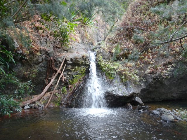 La randonnée débute à l'école de l'Îlet à Cordes où les emplacements de stationnement sont plus faciles à trouver qu'au départ du sentier. Quel plaisir d'être élève dans cette école entourée de fleurs et de paysages grandioses (Photo 1). Les points de vue sont nombreux dans toutes les directions, principalement vers le village et ses plantations de lentilles (Photo 2). Le Dimitile et le Gros Morne de Gueule Rouge dominent l'ensemble. Marcher vers Cilaos et emprunter à gauche le Chemin du Bras de Saint-Paul. A la fin de la descente, avant d'entamer la jonction avec le bras, profiter du paysage avec vue sur l'Îlet du Grand Coude qu'on rejoindra dans 30 minutes (Photo 3). Débuter la descente dans chocas et jouvences sur un sentier en bon état comportant une portion bétonnée et plusieurs lacets. En fin de descente le sentier traverse un bois de filaos avant d'arriver au bras de Saint-Paul. Traverser une première fois le ruisseau puis partir sur la droite par le nouveau sentier pour franchir le deuxième gué (Photo 4). Le parcours remonte ensuite en contournant l'ancien îlet du Bras de Saint-Paul en partie abandonné puis se poursuit vers l'îlet du Grand Coude. Une longue canalisation venant du Bras de la Vierge traverse les champs encore assez bien entretenus et plantés de lentilles (Photo 5). Plus haut, le sentier frôle une case en tôle entourée d'arbres fruitiers que l'on ne touche qu'avec les yeux. Un peu plus loin, après le contournement d'un rein, on s'approche de la passerelle surplombant le Bras Crochet en profitant d'exceptionnels panoramas sauvages sur les remparts du Petit Bénare et la Ravine de la Vierge (Photo 6). L'édifice, malgré la rouille et quelques trous dans le sol grillagé est très solide. Il supporte la canalisation du Bras de la Vierge. Le moindre rien fait vibrer et onduler l'ouvrage aussi est-il conseillé de le franchir une personne à la fois (Photo 7). La canalisation grimpe fort vers la cascade. Marcher en longeant le tuyau une quinzaine de mètres et l'enjamber pour emprunter une sente menant au Bras Crochet par une pente de plus en plus forte et glissante. Heureusement, des câbles sont là pour ralentir la descente s'effectuant sur un sol sableux très friable (Photo 8). Une fois dans le lit du torrent, remonter en évitant les obstacles plus ou moins faciles à contourner et parvenir à un goulet de canyon fermé par un bassin et son toboggan. L'endroit est charmant pour la première pause avant d'entamer la longue descente (Photo 9). Retrouver les passages délicats de la montée (Photo 10) et rejoindre le bas du sentier. On se retrouve à l'aplomb de la passerelle qui enjambe la vallée étroite. Très vite, il faut chercher un passage près d'un bassin qu'on devine plus bas. Passer en rive droite dans une faille comblée de gros blocs où un câble électrique aide à franchir les 8 mètres de descente abrupte (Photo 11). On se retrouve au bassin aperçu depuis la passerelle où prend fin le cours du Bras de la Vierge. L'eau du bassin est limpide avec de magnifiques reflets jaunes et verts. La difficulté suivante consiste à descendre prudemment du gros bloc basaltique dominant le bassin. C'est parti pour tenter de rejoindre la Ravine Bananes en moins de trois heures. De nouveaux blocs monstrueux obstruent le lit mais se contournent aisément s'il n'y a pas trop d'eau (Photo 12). Le lit est comme la plupart de ceux présentés sur ce site : des blocs qu'il faut éviter, enjamber ou franchir en sautant de l'un à l'autre. La pente est faible et le courant jamais dangereux. On se retrouve en 5 minutes, près d'un nouveau bassin créé par les derniers mètres de la Ravine Raisin (Photo 13). Une grosse racine et deux troncs posés sur la paroi laisse à penser que quelqu'un passe par ici. S'il est assez facile de monter en prenant garde, la descente peut s'avérer dangereuse et il est conseillé de ne visiter la belle vallée de la Ravine Raisin qu'en se munissant d'une corde pour la redescente. Reprendre la descente et parvenir en 5 minutes à un impressionnant cassé comportant deux cascades surmontées d'une dent rocheuse très pointue (Photo 14). Contourner la dent par la droite par une montée sérieuse dans les jouvences suivie d'une très forte descente. Il faut nager pour parvenir à la cascade mais l'eau est glaciale. Préférer cette visite sans danger en saison chaude. Le fond de la vallée est de plus en plus envahi de rochers et de filaos dont certains présentent des racines tourmentées par les crues (Photo 16). La descente se poursuit sans grandes difficultés nouvelles jusqu'au nouveau bassin alimenté par un toboggan où l'eau est tout aussi glaciale qu'en amont (Photo 17). La vallée se rétrécit. Le fond est de plus en plus envahi d'énormes blocs rouges (puis jaunes un peu plus bas), issus d'éboulis venant des falaises (Photo 18). Ne pas pratiquer cette descente de rivière en période de fortes pluies favorisant les chutes de roches dont certaines sont énormes. Ne pas manquer une arche basaltique en rive droite (Photo 19) qui doit se contourner par un étroit boyau imposant de se séparer du sac à dos (Photo 15). Une dizaine de minutes plus tard, quitter la rivière au gué franchi au début puis emprunter le sentier des Îlets du Bras de Saint-Paul à travers une végétation pauvre de galaberts, chocas, filaos rabougris et hautes herbes (Photo 20). Le sentier rejoint un plateau. Avant d'entreprendre la descente vers la rivière, ne pas manquer la très discrète sente permettant, au prix d'importants efforts et de quelques glissades de s'approcher d'un grand bassin (Photo 21). L'endroit est sauvage et l'étroite gorge située en amont doit également pouvoir se visiter plus aisément en période chaude après avoir traversé le bassin (Photo 22). Remonter sur le plateau puis entamer la descente vers la rivière par le sentier qui a disparu sur une centaine de mètres suite à un violent éboulis ay