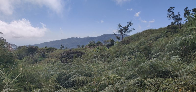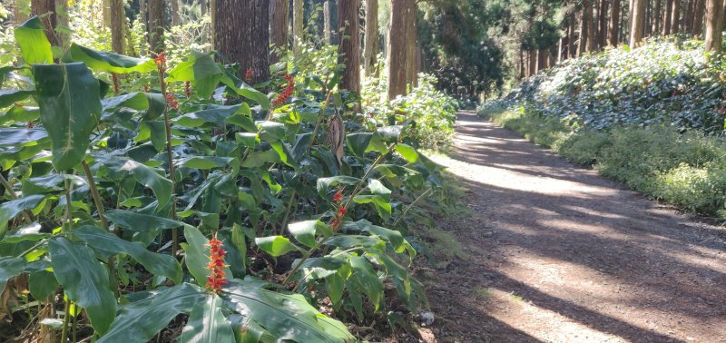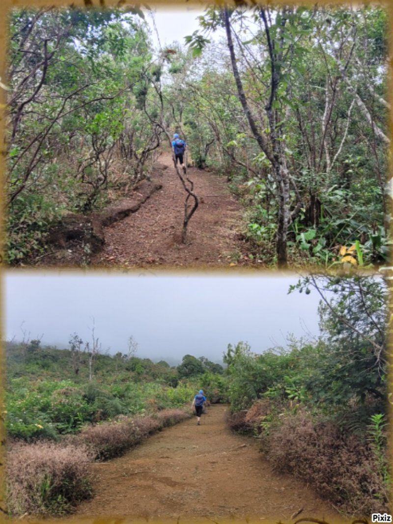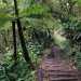La randonnée débute à la fin de la Route Forestière des Cryptomerias. Elle sera plus longue et plus difficile à partir de Sans Souci. Après avoir remonté l'allée bordée de cryptomerias, on se retrouve au départ du sentier de l'Îlet Alcipe par la Forêt de Sans Souci. Quelques panneaux donnent des indications et matérialisent les sentiers à parcourir dans la forêt (Photo 1). Le sentier plonge littéralement vers un affluent de la Ravine la Fontaine par une pente assez raide bordée de fascines de bois de goyaviers (Photo 2). Franchir la ravine et entamer une traversée de la belle forêt de bois de couleurs, hélas envahie par les longoses (Photo 3). C'est le domaine de la verdure omniprésente (Photo 4). La marche s'effectue le plus souvent entre les racines ou les marches aménagées par l'ONF. A l'approche de la Ravine la Plaine, le sentier traverse une aire aménagée qui peut servir de coin de repos grâce aux sièges en rondins (Photo 5). L'échelle en bois qui permettait de franchir une cassure du terrain est désormais remplacée par un large et stable escalier métallique (Photo 6). Le terrain pour rejoindre la ravine peut être glissant avec de fortes descentes parfois boueuses (Photo 7). On rejoint assez rapidement le départ de la boucle des Boucans en poursuivant sur racines et marches parmi les bois de couleurs et longoses (Photo 8). Au croisement des sentiers, prendre à gauche en suivant l'indication du poteau ONF (Photo 9). On reviendra, près de deux heures plus tard au sentier repéré à droite. Après une courte portion boisée, on parvient dans des clairières et zones anciennement défrichées et cultivées. Le sentier, large et propre, semble entretenu régulièrement (Photo 10). Son tracé correspond à une piste apparaissant encore sur certaines cartes IGN. Une bifurcation mène au gîte Tagoute situé à moins de 100 m (voir § ci-dessous). Poursuivre toujours en descente en profitant de quelques points de vue et de la flore. On remarque aussi des zones couvertes de vigne marronne et d'autres où des milliers de mouches bleues (Tenthrede cibdela janthin) butinent les ambavilles et les passiflores (Photo 12). La friche semble avoir tout recouvert mais on devine ça et là des feuilles de curcuma et de taros dépassant des invasives (Photo 13). La longue descente sur sentier large et propre se termine à une ravine. Il faut remonter quelques marches pour se diriger vers le sentier de Sans Souci (Photo 14). On parvient rapidement à une nouvelle aire avec ses poufs en bois d'acacia noir située au bord du sentier vers l'Îlet Alcipe (Photo 15). Après la longue descente il faut désormais s'attendre à une aussi longue montée sur un sentier de qualité exceptionnelle (Photo 16). De nombreuses touffes de bec zozo marron (Polygala virgata) bordent le large sentier (Photo 17). Tout comme à la descente, on profite, en se retournant, de larges panoramas sur la côte et sur la ville du Port (Photo 18). On aperçoit ou l'on devine ces fameux boucans qui semblent désertés pour la plupart (Photo 19). Il est bien sûr évident qu'on ne pénètre pas dans les propriétés privées en l'absence du propriétaire. En revanche, les rencontres sont toujours agréables lorsque la discussion s'engage avec l'un d'entre eux. Pour les marcheurs superstitieux, de vastes étendues de trèfles à quatre feuilles (Oxalis tetraphlla) entourent des boucans ou poussent sur le bord du sentier (Photo 20). Vers la fin de la montée, la pente s'accentue par endroits et le prochain sentier approche (Photo 22). Il plonge lui aussi vers une première ravine dont la remontée en rive gauche comporte de hautes marches en bois (Photo 23). Fin des champs car l'on arrive dans la forêt de Sans Souci. On retrouve les racines et quelques beaux bois de couleurs que l'on a rencontrés en début de boucle (Photo 24). Quelques dents de scie parfois abruptes et glissantes tirent un peu sur les muscles des cuisses mais la boucle est courte (Photo 25 et 26). On arrive rapidement au croisement emprunté précédemment et la fin du parcours suit le même itinéraire. On retrouve la vallée de la Ravine la Plaine (Photo 27), l'escalier métallique et les racines des bois de couleurs jusqu'à la fin du sentier. Le parcours prend fin sous les cryptomerias jusqu'au stationnement en fin de route (Photo 28).