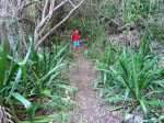 La randonnée débute au Chemin d'Armanet, dans le premier lacet rencontré depuis le dernier croisement de routes. Emprunter tout d'abord une large piste où circulent les véhicules des rares habitants de la zone (Photo 1). Très vite, après la dernière bifurcation, le chemin se transforme en sentier agréable (Photo 2). La végétation n'a rien d'extraordinaire mais il est plaisant de marcher sans effort dans la verdure (Photo 3). Les panoramas sur l'océan du côté de La Saline et de l'Ermitage sont fréquents (Photo 4). Les roches envahies de faux poivriers et de chocas sont de plus en plus nombreuses sans pour autant ralentir la marche (Photo 5). Cependant, quelques tronçons assez courts comportent de hautes marches dues à ces roches empilées (Photo 6). On retrouve très vite des zones de verdure où les traces et bouses montrent que les bestiaux aiment venir y brouter (Photo 7). Le sentier traverse la Ravine de la Souris Chaude près d'un vertigineux cassé sans doute impressionnant lorsque coule la cascade (Photo 8). On longe d'ailleurs plus loin la très profonde vallée de cette ravine très souvent à sec (Photo 9). Le sentier, toujours aussi rocheux, semble parcouru par les joggeurs du coin (Photo 10). On parvient à des murs de soutènement destinés à retenir la terre pour de très anciennes cultures désormais recouvertes de fougères, chocas et poivriers (Photo 11). Au lieu de remonter vers le village, le sentier entame une descente vers la droite (Photo 12). Le paysage change peu et la marche est toujours aussi agréable (Photo 13). Après cette courte descente, il remonte assez rapidement vers Bois de Nèfles en devenant plus étroit mais encore facile à suivre (Photo 14). A l'approche des premières habitations, quelques arbres fruitiers et cultures de manioc ou de maïs remplacent le maquis que l'on vient de traverser (Photo 15). Emprunter la petite rue qui remonte dans le village (Photo 16). En partant sur la gauche, on parvient à un escalier, début du raccourci du Sentier de la Halte entre cases et jardins évitant un long détour du Chemin Blanchard (Photo 17). Une fois le Chemin Blanchard atteint, en emprunter un tronçon jusqu'au croisement suivant. Parti à droite sur la Rue des Vavangues qui débute en forte montée et se poursuit plus loin par une belle allée bétonnée passant entre fourrés et habitations (Photo 18). Partir à gauche sur le Chemin Desbassyns jusqu'à une petite ravine. Entamer la montée par l'escalier du Sentier des Liserons qui effectue un virage vers la gauche et se poursuit à nouveau par une allée bétonnée puis en ruelle jusqu'à la Rue Gabriel Mareuil (Photo 19). Poursuivre à nouveau vers la gauche, franchir la Ravine de la Souris Chaude et rejoindre un croisement proche d'un château d'eau d'où l'on profite de larges panoramas sur la mer (Photo 20). C'en est terminé de la courte partie urbaine de la boucle en quittant Bois de Nèfles par le Chemin Mareuil qui rejoint la RD14 entre les champs de canne (Photo 21). Il n'y a que 400 m à effectuer sur cette départementale mais la circulation y est assez importante. Prendre donc garde pour rejoindre la première piste à droite après un lacet et entamer la descente sur le sol herbeux (Photo 22). La pente est faible et la marche facile (Photo 23). Rejoindre pour la troisième fois la RD14 et ne pas manquer le départ du dernier sentier entre deux routes en cul de sac menant à des habitations (Photo 25). Le sentier semble envahi par les lianes mais le passage se fait sans encombre (Photo 26). Traverser une ruelle puis poursuivre sur une trace alternant fortes pentes et zones plus plates (Photo 27). On retrouve le véhicule stationné à la fin du sentier, en état de marche, et non comme bien d'autres dans les talus bordant la piste (Photo 28).