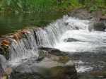 La randonnée débute en face de PWC, à un rond-point offrant plusieurs places de stationnement. Entamer la courte randonnée en partant sur la piste rectiligne entre les cannes (Photo 1). Très vite, on s'approche de la Rivière Cascade qui, par ses abords boisés, vient rompre la monotonie des paysages de champs plats couverts de canne à sucre (Photo 2). En arrivant au bord de la rivière coulant une dizaine de mètres plus bas, il est possible de marcher une cinquantaine de mètres vers l'aval pour la voir davantage (Photo 3). Repartir vers l'amont en longeant de grandes étendues de lianes recouvrant les berges (Photo 4). Pas de difficulté pour trouver le petit sentier qui débute à droite de la piste en terre (Photo 6). Très vite, il pénètre dans le sous-bois pour se rapprocher de la rivière (Photo 7). Nouvelle balade facile et plus pittoresque entre les grands arbres (Photo 8) et palmiers éventails de Chine qui encombrent les berges (Photo 9). Rejoindre les arbres avant d'entamer la descente vers l'eau (Photo 10). Longer quelques jardins ou maraîchages sur la droite (Photo 11). On parvient, à peine un quart d'heure après le départ du rond-point, en vue de la cascade qu'on entendait depuis deux minutes (Photo 12). En se mouillant un peu les pieds, on atteint la rive gauche pour contourner le bassin et se rapprocher de la belle chute d'eau (Photo 13). Profiter du bassin en fonction de la saison, du chrono ou de la météo. Avant de faire demi-tour, emprunter le sentier qui remonte vers les champs puis bifurquer à droite pour longer un petit canal de récupération d'eau (Photo 14). Destinée à l'arrosage des cultures, elle est récupérée grâce à une écluse (Photo 15). Vers l'aval, le haut de la chute est facile à rejoindre pour apercevoir le grand bassin (Photo 16). Quitter l'écluse bordée de grandes oreilles d'éléphant (Photo 17) et regagner le rond-point du départ en empruntant le même itinéraire ou d'autres pistes à travers champs.