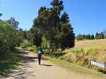La randonnée débute ici au croisement du Chemin Emmanuel Payet et de la Route Vaudeville. Partir plein sud et franchir rapidement la Ravine de la Chaloupe. La route étroite est très calme, sans circulation ou alors très occasionnelle. On côtoie sitôt le départ de vastes prairies qu'on ne quittera guère tout au long de la boucle (Photo 1). Certaines sont rasées par les bestiaux, d'autres gardées pour la coupe. Les invasives sont également très présentes. On retrouvera les plus classiques durant le parcours mais ce sont surtout les renouées du chinois qui dominent au début. Elles ont tout envahi et les longues lianes aux feuilles rougissantes grimpent jusqu'au sommet des arbres et des poteaux télégraphiques (Photo 2). La pente est faible en général et descend même par moments pour franchir les nombreuses ravines (Photo 3). Après avoir traversé les radiers de la Ravine de la Petite Chaloupe et le Bras Sec, on parvient à la Ravine de la Fontaine, juste au début du Trou de Jarre. Les familles poursuivront le long des clôtures de fil de fer barbelé. Les amateurs de remontées sauvages de ravines originales trouveront le petit passage en rive gauche pour débuter la montée de cette vallée courte et profonde. Elle est nommée différemment en fonction des cartes IGN ou des panneaux de la région (Photo 4). La pente est assez forte, les roches de gros volume et la végétation assez touffue (Photo 5). Malgré cet aspect tourmenté, il y a toujours moyen de passer les obstacles avec des marches naturelles bien placées (Photo 6). Durant la montée plusieurs portions basaltiques facilitent grandement la progression, dont une assez longue et reposante (Photo 7). Après 40 minutes de montée, on se retrouve face au plus important cassé de la remontée. Il peut paraître impressionnant à première vue (Photo 8). Un passage est assez facile en rive gauche, à moins de suivre de manière plus acrobatique le lit de la ravine. On se retrouve très vite au pied de la muraille d'où tombe une cascade lors d'épisodes pluvieux violents. Le retour est plus aisé car on se laisse glisser le long des rochers au lieu de les escalader. Reprendre la route en arrivant au radier. La pente s'accentue mais reste raisonnable. Les prairies sont bordées de cryptomerias procurant de l'ombre au bétail qui s'approche parfois des clôtures (Photo 9). Plus on monte et plus les panoramas en direction de l'océan s'agrandissent (Photo 10). Un coup d'œil sur la campagne permet de voir qu'il n'y a pas seulement des pâturages. Les acacias noirs et les fougères grignotent lentement ces surfaces et les éleveurs n'ont pas toujours le temps de débroussailler comme on le remarque tout au long de la boucle (Photo 11). La pente s'accentue encore un peu sur une route totalement déserte (Photo 12). A 1400 m, le regard porte de l'Etang Salé jusqu'à l'Ermitage avec les vagues bien visibles à la Pointe au Sel (Photo 13). Les premiers tamarins font leur apparition dans des prés traversés par de profonds talwegs (Photo 16). Au premier croisement, prendre à gauche et suivre la direction indiquée par le panneau annonçant le Centre équestre du Jar (Photo 17). La pente devient plus forte encore dans le même paysage. Les vaches sont pour un temps remplacées par des chevaux dont on entend les hennissements. Puis on parvient au centre équestre dont le nom a gagné un "d" en quelques hectomètres. Situé à 1600 m d'altitude, le centre abrite les chevaux qui bénéficient d'une agréable fraîcheur toute l'année (Photo 18). A partir du centre équestre, les efforts prennent fin excepté quelques courtes pentes qui se passent sans effort. Comme on a atteint les 1600 m, les prairies diminuent en lisière des forêts occupant les pentes du Grand Bénare jusqu'au Brûlé de Saint-Leu. Hélas, ces forêts sont principalement recouvertes de cryptomerias, acacias noirs et grands bringeliers qui ont colonisé les pâturages d'altitude (Photo 19). Les troupeaux sont de plus en plus présents autour des fermes d'élevage (Photo 21). La route, toujours aussi étroite et sans circulation, continue dans les tamarins, les arums et longues haies de troènes bordant les fermes et habitations (Photo 23). De longues lianes de barbadines recouvrent les arbres sur près d'un km mais les fruits sont dévorés par les oiseaux avant de vraiment mûrir (Photo 24). Un peu avant d'arriver à la Ravine des Colimaçons qu'on devine toute proche, le Chemin des Tamarins oblique plein ouest et entame sa descente tout en virages (Photo 26). Les surfaces de prés occupés par des vaches sont plus importantes que sur le reste de la boucle. On passe entre plusieurs fermes et l'on traverse à nouveau des ravines totalement envahies de renouées du chinois (Photo 27). Lorsque l'on rencontre le Chemin Emmanuel Payet sur la droite, la boucle est bouclée.