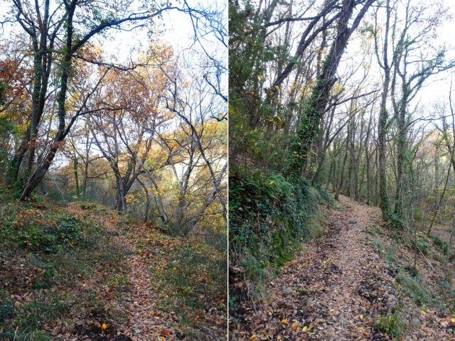 La randonnée débute au petit village de Gilette comportant de grands parkings à l'entrée ou à la sortie. La boucle débute ici en ville après avoir stationné près de la pharmacie. On peut se balader dans le village avant d'entamer la sortie pour en apprécier le calme et les paysages qui l'entourent (Photo 1). Il est possible de rejoindre les parkings de l'entrée mais aussi de descendre par un long raccourci à emprunter au tout début de la route de Roquesteron. Il rejoint rapidement l'école de Gilette. Poursuivre par une courte portion de la Route des Espauvettes et ne pas manquer le sentier partant sur la gauche. Il descend parfois assez fortement par des lacets jusqu'au premier croisement. Prendre à gauche et marcher en direction du Latti qu'on entend couler avant de le traverser un peu plus loin sur une passerelle proche des ruines d'une bergerie. Le sentier est large, propre, bordé de végétation avec de beaux points de vue sur les montagnes environnantes (Photo 2). Il longe ensuite le Latti qu'on domine. Le sentier en corniche passe parfois près du vide. Il est étroit mais facile à suivre (Photo 3). Après une passerelle difficile à discerner, le sentier traverse d’anciennes plantations d'oliviers ou frôle souvent de nouvelles ruines. On passe aussi près d'une habitation située à Fond d'Aiméou à la fin d'une petite route. On a sous les yeux la vallée profonde du Latti (Photo 4). Le sentier se met alors à monter de plus en plus, parfois en lacets, à travers une très belle chênaie (Photo 5). On rejoint assez vite une propriété de Colle Belle entourée de grillage avant de parvenir à une petite route montant fortement vers la M11. Ne pas manquer quelques raccourcis pour éviter cette route sans grande circulation. Il faudra cependant en emprunter 300 m et profiter ainsi des sommets environnants (Photo 6). Au premier virage, ne pas manquer le premier sentier menant à la piste vers le Pont de la Cerise qui est large et très agréable (Photo 7). De nombreux raccourcis faciles à négocier évitent les longs virages de la piste (Photo 8). On s'approche doucement de l'Esteron qu'on entend couler sur la gauche. Des zones rocheuses protégées de grillages en bordure de falaise offrent de beaux points de vue sur les gorges (Photo 9). Prendre ou non le dernier raccourci se finissant à une passerelle et rejoindre rapidement le Pont de la Cerise qui enjambe l'Esteron (Photo 10). Le torrent peut impressionner mais il est possible de s'en approcher (Photo 11) ou d'en remonter le cours assez tumultueux à cet endroit (Photo 12). Effectuer une pause dans cet endroit sauvage avant d'entreprendre la montée de l'autre côté. Le sentier est très large, empierré avec de belles vues sur les montagnes (Photo 13). Plus on s'élève et plus ces panoramas sont superbes sur les montagnes calcaires bordant la rivière (Photo 14). Les sentiers encore présents sur les cartes pour dominer les gorges ont quasiment disparu. Aussi, après le 9ème lacet, obliquer à gauche en direction de l'oratoire ND du Brec et Bouyon (Photo 15). Ce nouveau parcours, plus étroit, suit en corniche la falaise qui domine les gorges (Photo 16). Longer la falaise sur ce magnifique sentier dominé par le Maupet et ses 611 m ou par le Rocher des Carbonniers (Photo 17). On parvient très vite à l'oratoire en pierre en forme de colonne (Photo 18). Poursuivre par quelques lacets avant de profiter des plus beaux paysages de la journée en direction des gorges une centaine de mètres plus bas (Photo 19). On quitte plus loin les falaises et les à-pics pour pénétrer dans les sous-bois (Photo 20). Au prochain croisement, le sentier de droite file en direction de Bouyon. Trouver, en face, celui qui descend vers l'Esteron. Il comporte quelques portions pentues mais la progression est aisée tout le temps. On parvient aux rochers bordant le rivière le long de laquelle il est possible de cheminer en fonction du chrono. La remontée est plus difficile entre les arbres et restes de murets de soutènement des terrasses d'anciennes cultures (Photo 21). Reprendre à gauche le sentier principal et poursuivre dans la forêt en frôlant quelques ruines réparties sur le parcours (Photo 22). On ne quitte jamais les anciens travaux du siècle dernier qui ont modelé les flancs des montagnes pour en faire des champs ou des prairies (Photo 23). Le parcours se met à descendre, parfois fortement en longeant des clôtures électriques. On parvient à un élevage où il est déconseillé de nourrir ânes et chevaux. Plus loin, le sentier termine à une petite route près de la ruine d'un grand bâtiment. Partir à gauche puis emprunter immédiatement le sentier de gauche en rive droite du Bouyon (Photo 24). Le sentier suit le torrent au plus près avant de s'en éloigner un peu. A de nouvelles ruines, sans doute celles d'un moulin, traverser un petit ruisseau et retrouver de nouvelles portions de sentier très agréables en sous-bois avec de belles vues sur les montagnes (Photo 25). Il monte fortement au début puis s'assagit et redescend vers l'Esteron qui traverse le hameau de la Clave. Franchir la rivière sur une passerelle très souple (Photo 26). Poursuivre entre des habitations isolées et des vergers puis contourner complètement la dent pointue de la Clue (Photo 27). Après la dernière maison, le sentier botanique monte fortement en lacets encombrés de grosses pierres et parfois de restes d'éboulis. Hormis ces petits éboulis et les parties pentues, il reste toujours agréable malgré sa fermeture. Une très longue partie de la montée a été aménagée et bétonnée (Photo 28). La dernière partie rejoint facilement Gilette. Une fois sur la route, partir à gauche vers l'école puis par le raccourci ou à droite vers les autres parkings selon le lieu de stationnement.