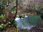 La randonnée débute ici à la fin du Chemin Georges-Antoine Durbec qu'on emprunte près de la poste du village. En cas d'impossibilité de stationner au bout de la rue, préférer un départ en ville. Le parcours commence par quelques marches qui rapprochent d'une zone humide. Un premier panneau du Service Départemental d'Incendie et de Secours précise que l'on rencontrera un panneau tous les 500 m pour se situer en cas de problème (Photo 1). Le début du sentier passe dans de vastes étendues de canisse. Plus loin il pénètre dans une zone boisée et entreprend sa descente vers la rivière (Photo 2). Une dizaine de minutes après le départ, on se rapproche de la Brague qui coule calmement sur la gauche. Une longue passerelle en bois marque le début de la randonnée sur les berges (Photo 3). Un peu plus loin, le sentier rencontre un canal dont une partie a été édifiée sur un petit pont. En passant sous l'édifice, on remarque les coulées calcaires issues des débordements ou des fuites qui ont couvert le pont de concrétions calcaires (Photo 4). Par la suite, le parcours longe au plus près ce canal désormais désaffecté (Photo 5). A l'époque, il transitait même par des tronçons rocheux évasés, aujourd'hui recouverts de caillebotis pour faciliter la marche (Photo 6). On rencontre, depuis la passerelle, des sortes de barrages naturels constitués de dépôts de calcaire recouverts de mousse (Photo 7). Ensuite le sentier traverse un beau bois ombragé, totalement à plat pour une randonnée facile, toujours au plus près de l'eau (Photo 8). On chemine en rive gauche jusqu'au pont-radier permettant de changer de rive (Photo 9). La partie la plus agréable débute ici, car le sentier devient un chemin pavé et bétonné qu'il suffit de suivre sans réfléchir en découvrant des petites chutes (Photo 10). Ce chemin évite de marcher sur les cailloux bordant la Brague ou sur les racines devenues glissantes par temps de pluie (Photo 11). On ne compte plus les bassins et petites chutes. Très peu de poissons à apercevoir malgré la transparence de l'eau (Photo 12). Les seules pentes rencontrées sont là pour éviter des rochers trop glissants sur les berges (Photo 13). L'arrivée à la Bouillide impose de traverser cet affluent de la Brague afin de poursuivre vers l'amont (Photo 14). Pas de changements, ni de rythme ni de type de sentier toujours pavé. Des haltes sont possibles pour se rapprocher des petites cascades en regagnant les berges (Photo 15). Plus d'1 heure après le départ, on parvient au pont situé à la fin de la Route de l'Agasse et son parking utilisé par les sportifs (Photo 16). La vallée semble se rétrécir mais l'impression est due à une barre rocheuse bordant la rivière (Photo 17). Les bassins créés par ces barrages de calcaire sont de plus en plus nombreux (Photo 18). Certains, plus grands, font penser à de petits étangs (Photo 19). Après quelques méandres, la Brague passe sous la D604 en direction de Valbonne. Tout près, l'ancien pont est fermé à la circulation (Photo 20). Des sentiers, souvent annoncés par des panonceaux "sentier pédestre" sont de plus en plus présents tout au long du parcours. Ils permettent de créer des parcours différents pour s'entraîner sans avoir à trop s'éloigner des villes proches. Les falaises calcaires comportent ça et là des petites grottes sans grand intérêt ou des sculptures en bas-relief recouvertes de mousse (Photo 21). Plus haut, on parvient au confluent du Bruguet reconnaissable à son charmant petit pont (Photo 22). S'il y a de l'eau dans ce superbe petit ruisseau, ne pas hésiter à le remonter sur 150 m pour s'approcher de la cascade du Bruguet. Continuer vers l'amont sur cet agréable sentier. 15 minutes après le petit pont, les premières propriétés se présentent sur les berges, signe que l'on s'approche de Valbonne (Photo 23). Un autre pont se présente à la fin du Chemin du Moulin. Le sentier se poursuit le long des berges. Une croix jaune explicite en déconseille l'accès. Prendre ses responsabilités pour découvrir ce dernier kilomètre passant près d'une grotte. Plus officiellement, emprunter alors la Piste du Moulin de l'Ange (herbeuse), délaisser la piste de la Béguine et continuer sur la Piste de la Calanque (sableuse) en direction de Valbonne (Photo 24). Cette piste rejoint la Brague après un détour vers le sud (Photo 25). Le village se rejoint par un dernier gué bétonné qui comporte de grands plots glissants (Photo 26). Rejoindre le cimetière par la partie goudronnée du Chemin de la Calanque sous une végétation touffue (Photo 27). Une petite portion de route est inévitable entre le cimetière et la Rue de la Brague permettant de pénétrer dans Valbonne. En fonction du chemin prévu pour le retour, prendre son temps pour flâner dans les rues étroites de cette bastide déserte en hiver et bondée de touristes une fois l'été revenu (Photo 28).