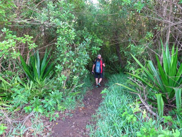 La randonnée débute ici au centre anti-cancer tout neuf de Quatre Bornes. Les gardiens, prompts à entamer la conversation, invitent même à stationner sur le parking du centre. Emprunter la petite route en quittant le centre par la droite et trouver très vite le sentier débutant sur la gauche qui évite de pousser plus loin vers le début de la piste (Photo 1). Le passage, moins utilisé que d'autres entrées, est tout de même très facile à suivre dans les friches (Photo 2). On récupère très vite la piste qui part à l'assaut de la colline. Elle est constituée de terre rouge volcanique (Photo 3). Repérer, en montant, de nombreux sentiers partant de tous côtés. Ils seront utiles au retour pour changer de la piste. Moins de 15 minutes après le départ, on parvient au sommet marqué par un grand kiosque et une porte symbolique en bois (Photo 5). Du kiosque, on bénéficie de quelques vues sur la région mais en partie masquées par les arbres (Photo 7). Reprendre le chemin inverse puis bifurquer à gauche au premier sentier qui s'enfonce dans la forêt (Photo 8). Tout aussi connu que la piste puisqu'il mène à un point de vue, le large sentier est agréable (Photo 9). On parvient à une barrière qu'il est aisé de contourner pour regagner le rocher que l'on peut repérer depuis Quatre Bornes. Toute la ville s'étale au pied de la colline et le Corps de Garde paraît solitaire au milieu de cette urbanisation forcée (Photo 10). Reprendre à nouveau le chemin inverse et retrouver la piste. Entamer la descente mais ne pas hésiter à emprunter les sentiers qui évitent la terre rouge de la piste (Photo 11). L'un d'entre eux, sur la gauche en descendant, sillonne les fourrés et bosquets. On devine de loin le parc Sodnac et même les arbres qui longent la piste (Photo 12). Cet itinéraire renforce l'idée de randonner puisque l'on est sur des sentiers. Une fois la piste retrouvée, repartir à gauche à nouveau sur un chemin empierré et ombragé où l'on rencontre de nombreux marcheurs et coureurs (Photo 13). Une porte du même acabit que celle du sommet est le point de départ pour les sportifs venant du grand parc (Photo 14). Franchir la barrière et pénétrer dans le Sodnac Wellness Park afin de poursuivre agréablement cette sortie urbaine. Partir à gauche et longer le grillage afin de tenter un tour complet. De l'autre côté, une halte permet de voir un canon pointant sur les terrains (Photo 15). Des travaux ont été entrepris pour fortifier les pentes et installer des équipements sportifs au pied de la colline (Photo 16). Poursuivre vers l'est sur des allées ombragées (Photo 17). Le contraste est souvent important entre les immeubles, la verdure et même une grande plantation d'arbres endémiques (Photo 18). Le parc est divisé en zones bien délimitées et indiquées par des panneaux (Photo 19). Il finit au milieu des immeubles à un grand parking dédié aux visiteurs. L'allée se poursuit donc pour repartir vers l'ouest (Photo 20). La colline, à cette distance, paraît bien petite même si elle domine de 100 m (Photo 21). Il doit faire bon habiter près de cette verdure bien entretenue (Photo 22). L'allée accueille autant de marcheurs et coureurs que de l'autre côté (Photo 24). Les équipes de foot se régalent sur cette pelouse digne des grands stades (Photo 26). Une fois le tour complet terminé, repartir derrière la clôture en reprenant à gauche après la porte. Tourner à droite au premier croisement puis suivre le sentier longeant des parcelles qui pourront par la suite être enfermées derrière des grillages (Photo 27). Rejoindre la Rue Sayed Hossen puis partir à droite en direction du centre anti-cancer. La route est un peu bruyante mais la jonction est courte. Marcher sur le trottoir (Photo 28). On peut rejoindre le véhicule par la petite rue ou traverser les installations du centre médical.
