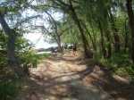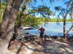 La randonnée débute ici au minuscule port de Grand River South-East où il est très facile de trouver un bateau. A moins d'être très pressé, accepter, comme le veut la coutume, de remonter auparavant la rivière jusqu'à la cascade GRSE qui se rejoint également en randonnant à pied à partir du village. La rivière est très calme et la balade reposante (Photo 1). Après un passage technique entre les rochers, le bateau effectue un demi-tour au pied de la chute (Photo 2). Il attaque ensuite le trajet vers le sud de l'île. On peut tranquillement profiter des vues sur Quatre Sœurs, le Chat et la Souris et la Montagne Bambou (Photo 3). Si de nombreux touristes empruntent le même bateau, il peut déposer tout le monde au centre de l'île, ce qui changera la randonnée côtière. Sinon, il s'arrête sur la plage la plus au sud (Photo 4). Une fois sur le sable chaud, il n'y a plus à réfléchir, la randonnée se fera à l'instinct en suivant au plus près la côte Est. Dès la fin de la plage, toutes les terres sont désormais de vastes greens accueillant chaque jour des dizaines de golfeurs (Photo 5). Si on ne repère pas de chemin en bordure de littoral, marcher simplement sur le sable en profitant des superbes paysages et des lagons transparents (Photo 6 et 7). Quand la côte est trop rocheuse, préférer les chemins ombragés sous les filaos (Photo 9). Quelques emplacements reçoivent pour la journée des groupes de touristes venus se reposer ou participer à des repas organisés localement (Photo 10). Les rochers sont très rares. Le paysage est surtout constitué de longues plages souvent désertes (Photo 11 et 12). On arrive très vite à la langue de sable qui a obstrué le chenal et relié les deux îles originelles (Photo 14). Traverser cette étroite bande et poursuivre dans les mêmes conditions le long de la côte en marchant sur le sable (Photo 15) ou sur les chemins (Photo 16). Un peu avant la pointe Nord-est, plus rocheuse, emprunter vers la gauche le chemin qui passe d'abord près de petits bâtiments. Il s'enfonce dans les filaos en direction des mangroves (Photo 17). Totalement plat, il donne l'occasion de s'éloigner de l'air marin sans fatigue (Photo 18). La première lagune, surtout bordée de filaos, ne permet pas de nager en raison de la hauteur de l'eau (Photo 19 et 20). La suivante, toute proche est bordée de davantage de palétuviers. Profiter de nouvelles vues sur le Mount Bambou ou repérer les belles fleurs de palétuviers qui donneront plus tard de longues gousses s'enfonçant dans la vase comme une flèche (Photo 21). Le chemin se transforme en sentier dans les hautes herbes (Photo 22). On parvient à un troisième spot d'eau calme dans les palétuviers (Photo 23). Faire demi-tour jusqu'à la côte, poursuivre vers le Nord avant de bifurquer en direction des terres que l'on devine sur la gauche (Photo 24). De nombreux coins de repos sont aménagés pour les touristes (Photo 25). Continuer plein ouest en reprenant un petit sentier proche de la plage (Photo 26) ou, comme depuis le début, en foulant le sable clair (Photo 27). On parvient à quelques installations de restauration où il est fort agréable de déguster une bière locale les pieds dans l'eau afin d'oublier la chaleur (Photo 28). La remontée totale de l'île étant finie, il faut désormais reprendre le chemin inverse pour atteindre le goulet entre les deux anciennes îles. L'embarcadère se trouve près de la boutique de souvenirs. Compter une bonne demi-heure pour atteindre ce nouveau point de départ depuis la halte rafraîchissante.