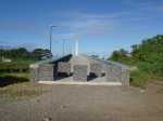 La randonnée pour personnes à mobilité réduite débute à la nouvelle gare routière où un grand parking provisoire attend d'être aménagé dans les projets d'urbanisation futurs. Dès le départ, on a sous les yeux l'ensemble de l'ouvrage dont les arches arrondies rappellent les roues dentées de l'usine (Photo 1). Se rapprocher de la nouvelle gare bordée d'allées paysagères (Photo 2). La contourner ou la traverser si elle est ouverte puis se diriger vers l'autre bâtiment qui comporte l'ascenseur, les rampes ou l'escalier donnant accès au tablier (Photo 3). Une fois atteint, partir vers le fond en direction de la mer pour profiter du balcon aménagé (Photo 4). Quelques bancs permettent aux sportifs de se reposer (Photo 5). Le large balcon domine ce qui sera un jour une zone artisanale (Photo 6). Pour le moment, seul le grand cinéma borde la large voie dédiée principalement aux transports en commun (Photo 7). Partir en direction de Pierrefonds. De nouveaux bancs attendent les curieux (Photo 8). Les amateurs d'architecture moderne apprécieront les arches construites au milieu du tablier (Photo 9). Actuellement aucun bâtiment ou magasin car la plupart des terrains sont pour l'instant en friche (Photo 10). L'ouvrage, très large, accueille deux bandes pour les cyclistes et les coureurs (Photo 11). Comme le pont est élevé, on bénéficie de magnifiques panoramas en direction des plus hauts sommets de l'île. Le Dimitile, le Grand Bénare et le Gros Morne dominent le Cirque de Cilaos (Photo 12). On arrive rapidement à la très bruyante route nationale où des milliers de véhicules circulent chaque heure (Photo 13). On se trouve alors sur la portion dominant la 4 voies, reconnaissable de loin à sa grande arche rouge, posée à l'époque en un seul tenant par d'énormes grues (Photo 14). Le tablier descend en pente douce en direction de l'usine. Sur la droite, le terrain de sport de Pierrefonds (Photo 15). Le pont se termine par des chicanes et surtout une haute marche pour le moment (Photo 16). Faire demi-tour.