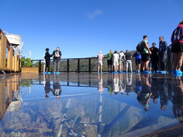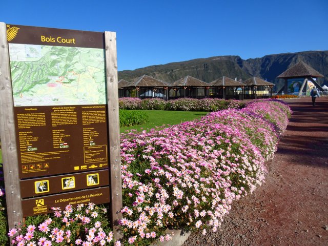 Bois Court est un agréable village situé en bordure du haut rempart dominant le village isolé de Grand Bassin. Il est très fréquenté des randonneurs désirant descendre à Grand Bassin pour y passer la nuit ou se baigner au Voile de la Mariée. Depuis quelques années, un belvédère en bois permettait, avant d'entreprendre la randonnée, d'évaluer la longue descente menant au village. 2025 a vu ce parquet en bois être remplacé par un plancher transparent où la sensation de vertige est toute relative. Tout près, une horloge à eau, détruite deux fois par de violents cyclones, attendait d'être remise en état. Plus de 250 000 € plus tard, la voici prête à donner l'heure exacte uniquement avec des ballons d'eau bleue. Nos amis ayant des difficultés de déplacement n'ont pas été oubliés. Si les visiteurs sont obligés de mettre des sur-chaussures, les chaises roulantes munies de pneus échappent à la règle. Enfin, si les randonneurs pressés filent droit au sentier, les chaines roulantes pourrons zigzaguer sur les allées sinueuses créées dans un jardin paysager qui mériterait sans doute une essence ou deux des endémiques de la région fraîche de la Plaine des Cafres. Deux kiosques sont équipés pour terminer cette double visite par un traditionnel cari près du barbecue.
