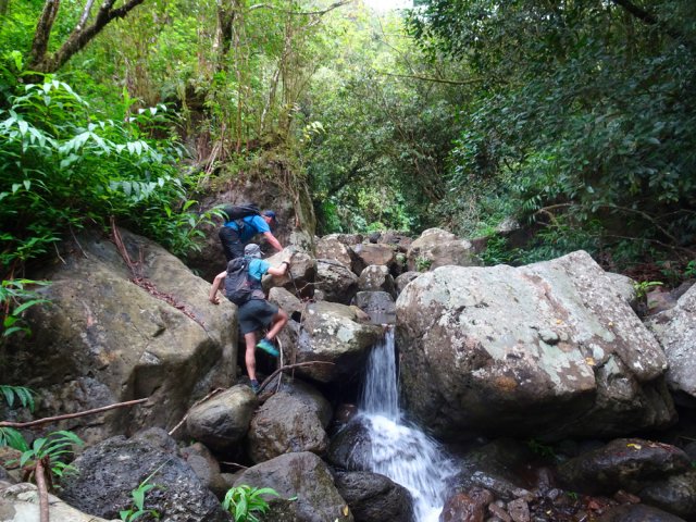 La Ravine du Butor, comme tant d'autres sur l'île, est loin d'être pérenne. Pour être assuré de voir des cascades ou se baigner, s'y rendre à une saison où les cours d'eau coulent abondamment. Pas de difficulté pour remonter la ravine qui ne comporte aucun piège. La première chute s'évite et se contourne par le sentier des ouvriers chargés de la maintenance des captages en amont. Les rambardes sécurisent grandement. La seconde demande de repérer le sentier et de remonter, le corps penché vers l'avant, sur une pente glissante très forte. Il existe certainement des passages pour aller en amont de la troisième mais la fiche s'arrête au pied avant de proposer un retour par les mêmes raccourcis et le lit de la ravine. La randonnée est trop courte pour l'organiser seule. Prévoir une autre sortie dans la région ce jour-là.