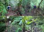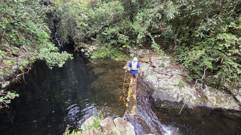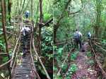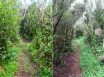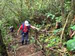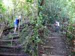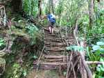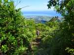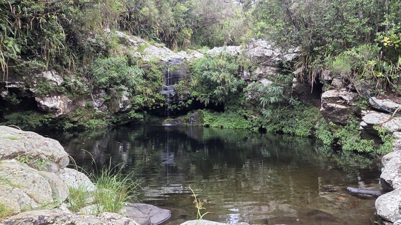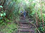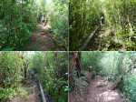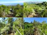 Cette double boucle suit une partie des sentiers empruntés lors du parcours débutant à l'Espérance les Hauts. Les sentiers historiques des forêts de moyenne altitude dominant le chef-lieu sont nombreux et souvent assez bien entretenus. Hélas, certains propriétaires de la région s'approprient le passage et le "privatisent", rendant difficile l'exploration de cette région variée proposant de belles ravines et une multitude de cascades. Si la majorité des pépiniéristes de l'Espérance laissent passer les randonneurs et apprécient même leur présence, ce n'est pas le cas de tous. Cette fiche propose de retrouver sentiers, panoramas, forêts, bassins et cascades en partant cette fois du village installé de l'autre côté de la Ravine Sèche. On oubliera les très fortes pentes du sentier de l’Échelle côté Espérance, pour en retrouver de tout aussi ardues à partir de la Confiance les Hauts. L'ADE (Association de Développement de l'Espérance), quand elle dispose de crédits, entretient de très belle manière les sentiers de la zone. Les membres nettoient, installent des rambardes au bord des précipices, créent des marches avec un matériau facile à trouver sur place comme sur toute l'île. Le goyavier tient en effet une grande place sur le terrain, même s'il laisse encore passer quelques bois de couleurs dont de vénérables bois de remparts toujours aussi massifs. Ne pas manquer de rendre de courtes visites aux bassins proposés ici ainsi que ceux de la fiche 1541 (non présentés ici). La boucle est courte mais nécessite cependant plus de trois heures en raison de belles ascensions effectuées sur des sentiers en escaliers qui coupent parfois le souffle. Il suffit alors de les aborder à un rythme régulier.