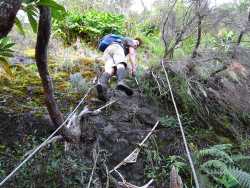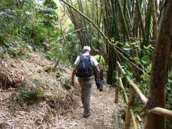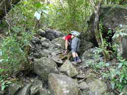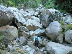 C'est en général le fond des rivières qui est envahi de galets de toutes tailles, plus ou moins stables sous le pied. Ce sont également les sentiers autour du volcan ou du Grand Bénare qui traversent des zones très minéralisées. La progression est plus lente sur de telles zones.